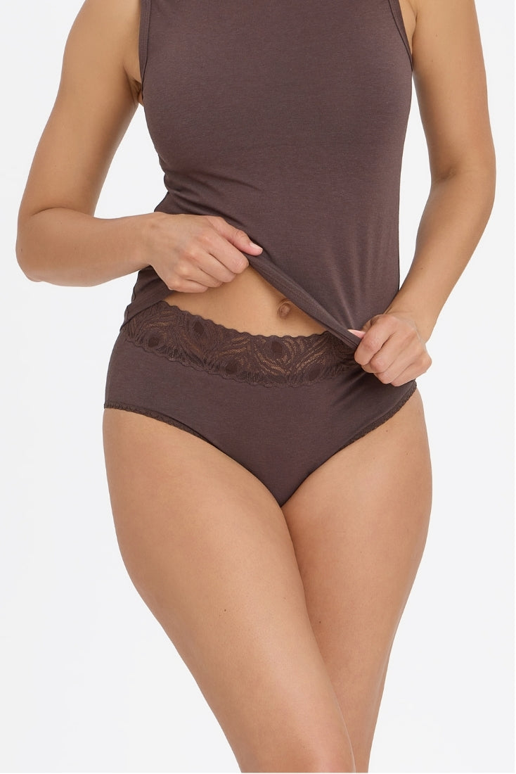 A chic lace band and snug supportive fit with bamboo / cotton softness