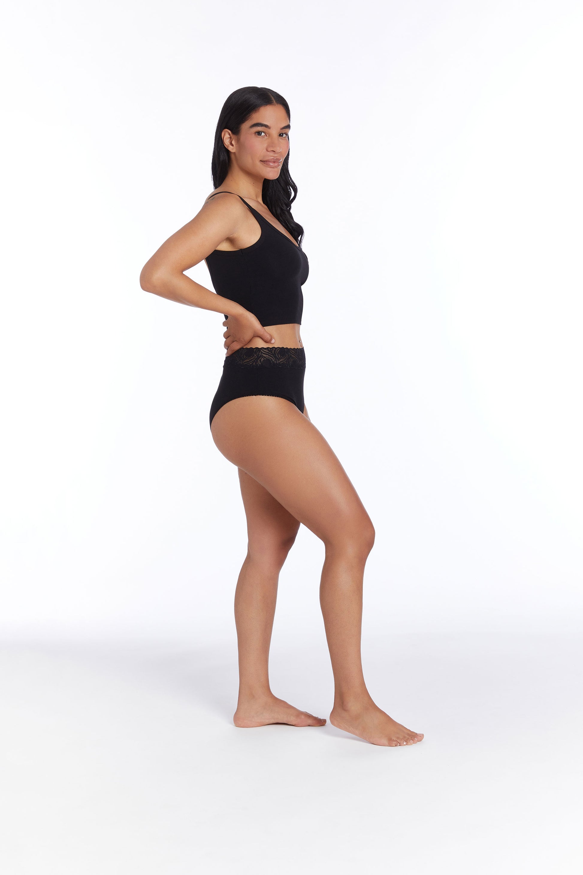Made with soft, sustainable bamboo/cotton that contours, smooths and shapes