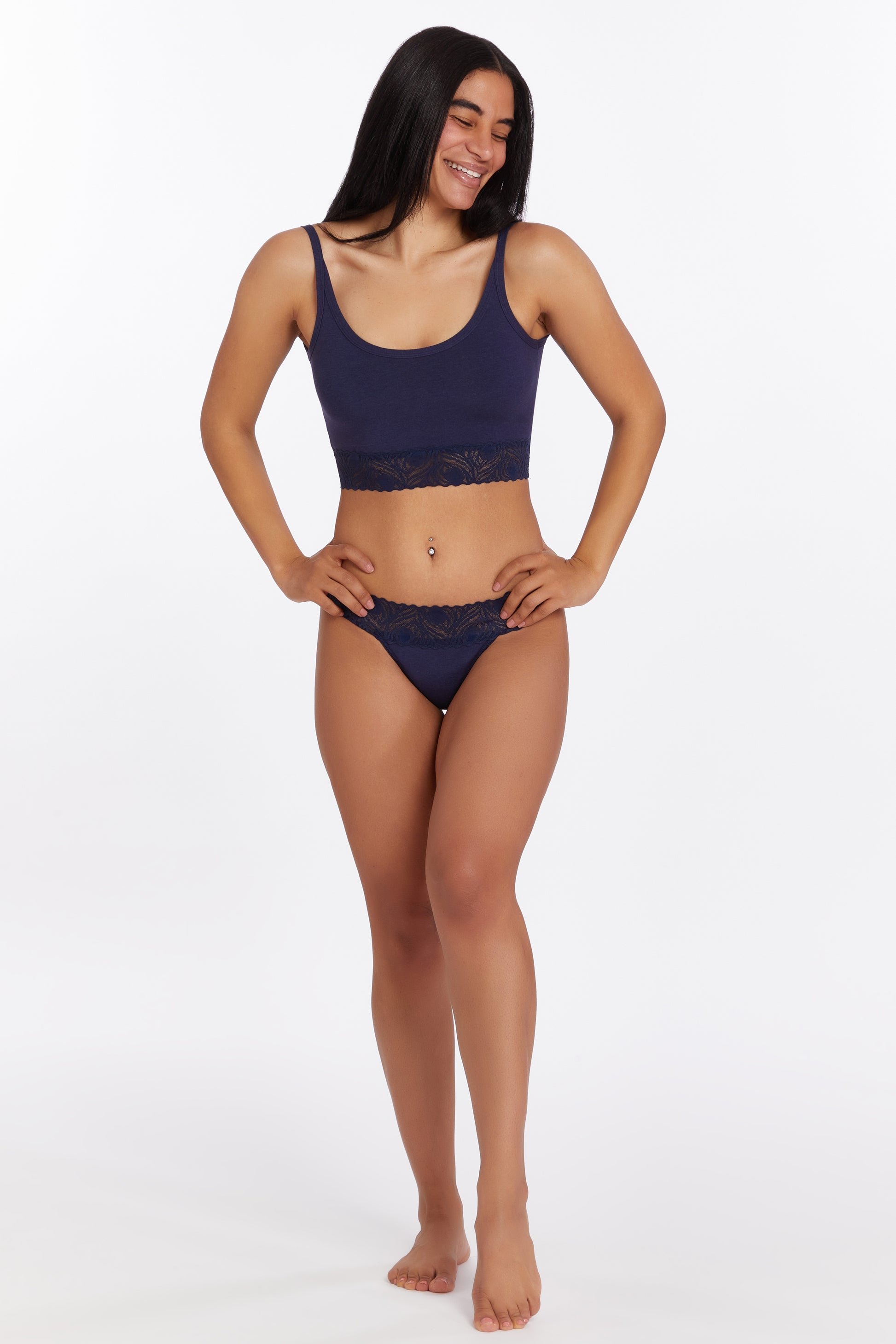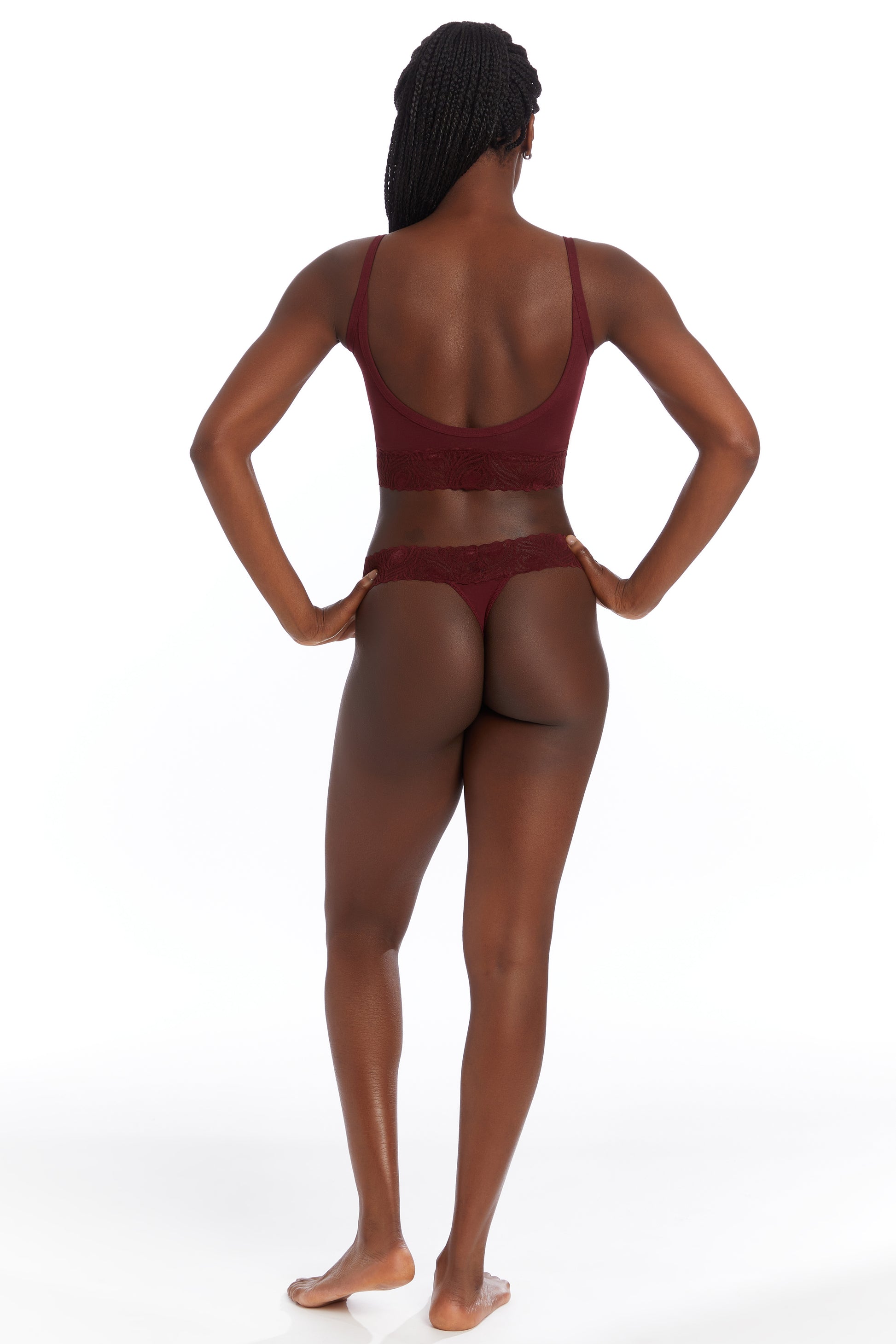 Features deep back scoop, a stay-put lace band and a snug, supportive fit