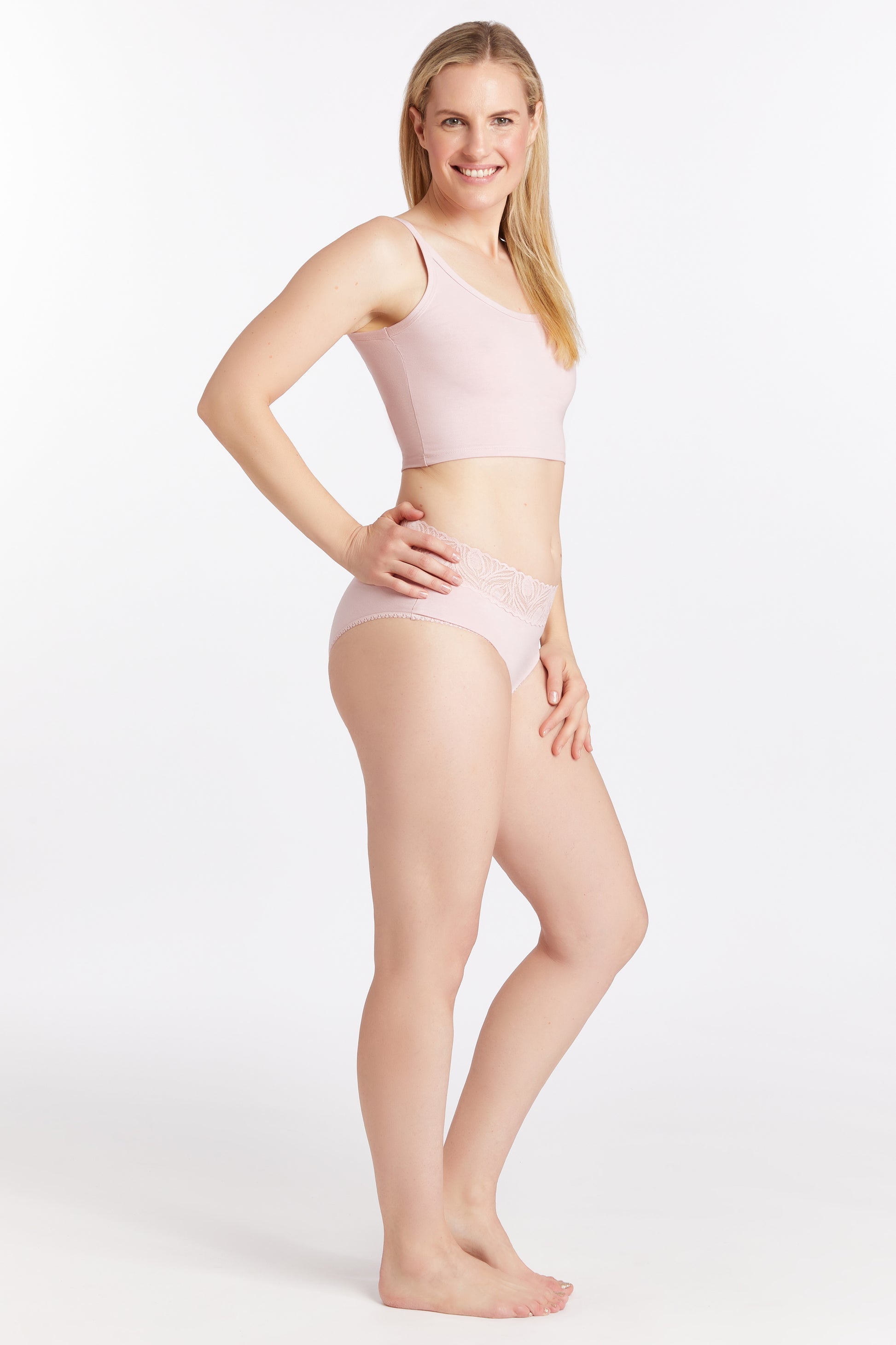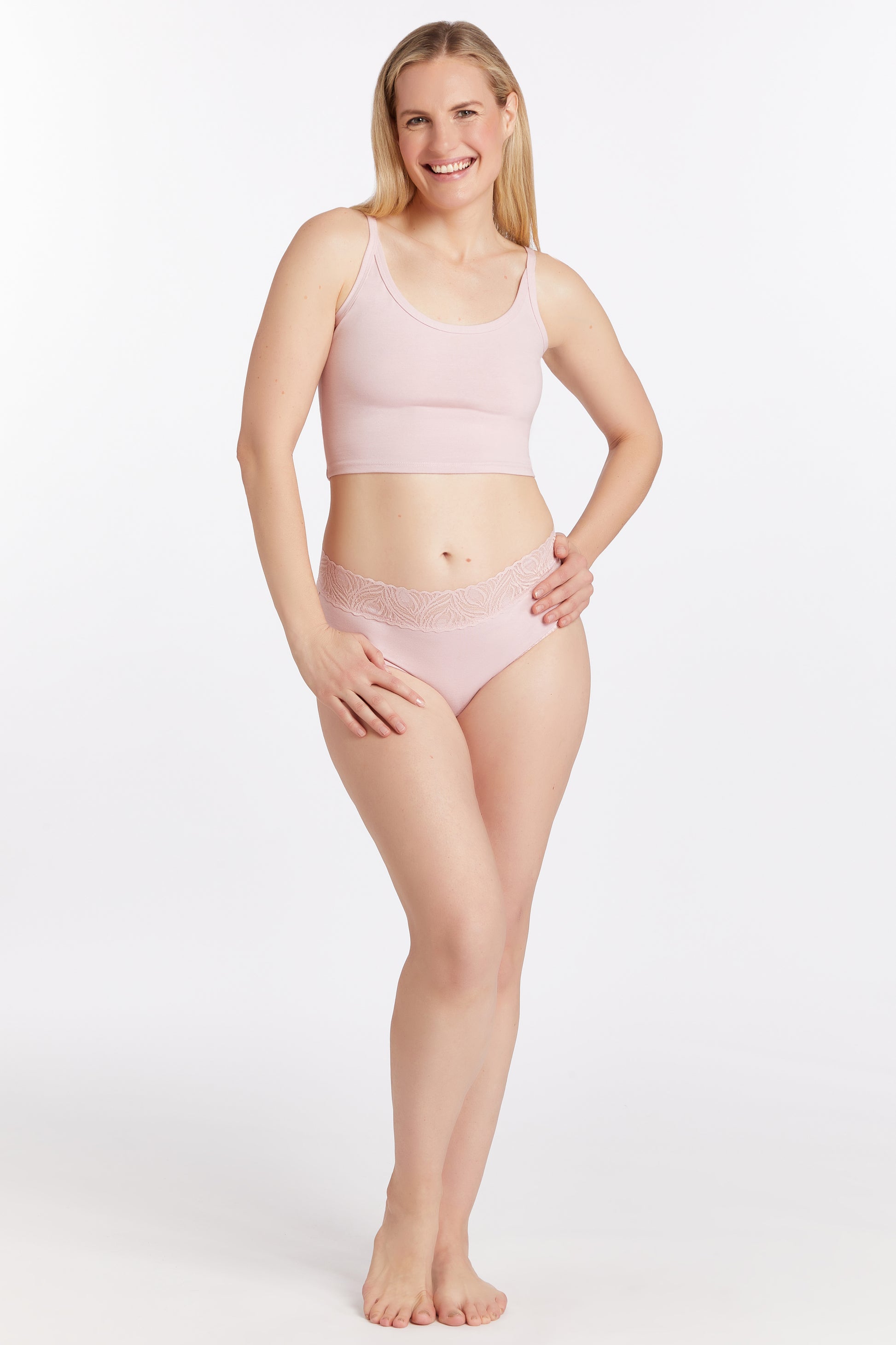 Features a PFOA free, leak-proof, built-in panty liner that smooths cameltoe