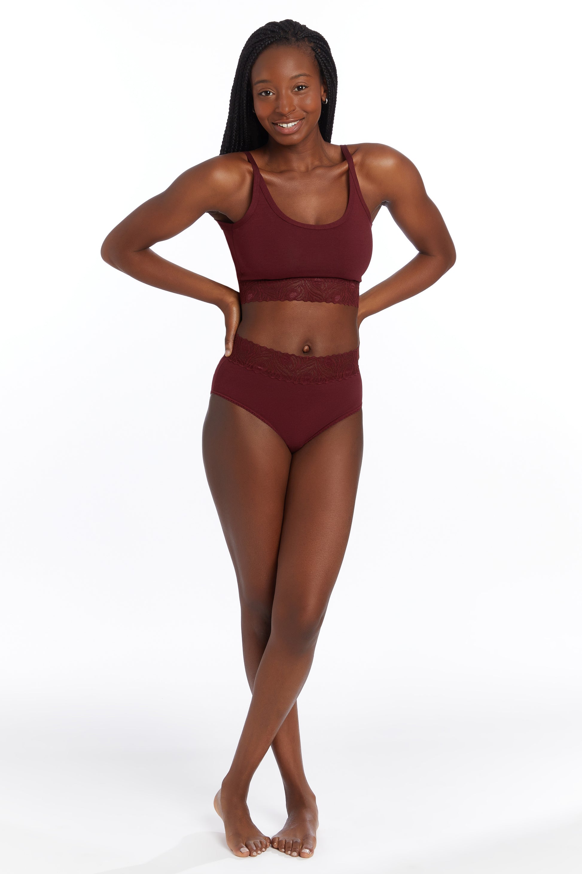 Full front and moderate back coverage, a classic silhouette with a modern twist